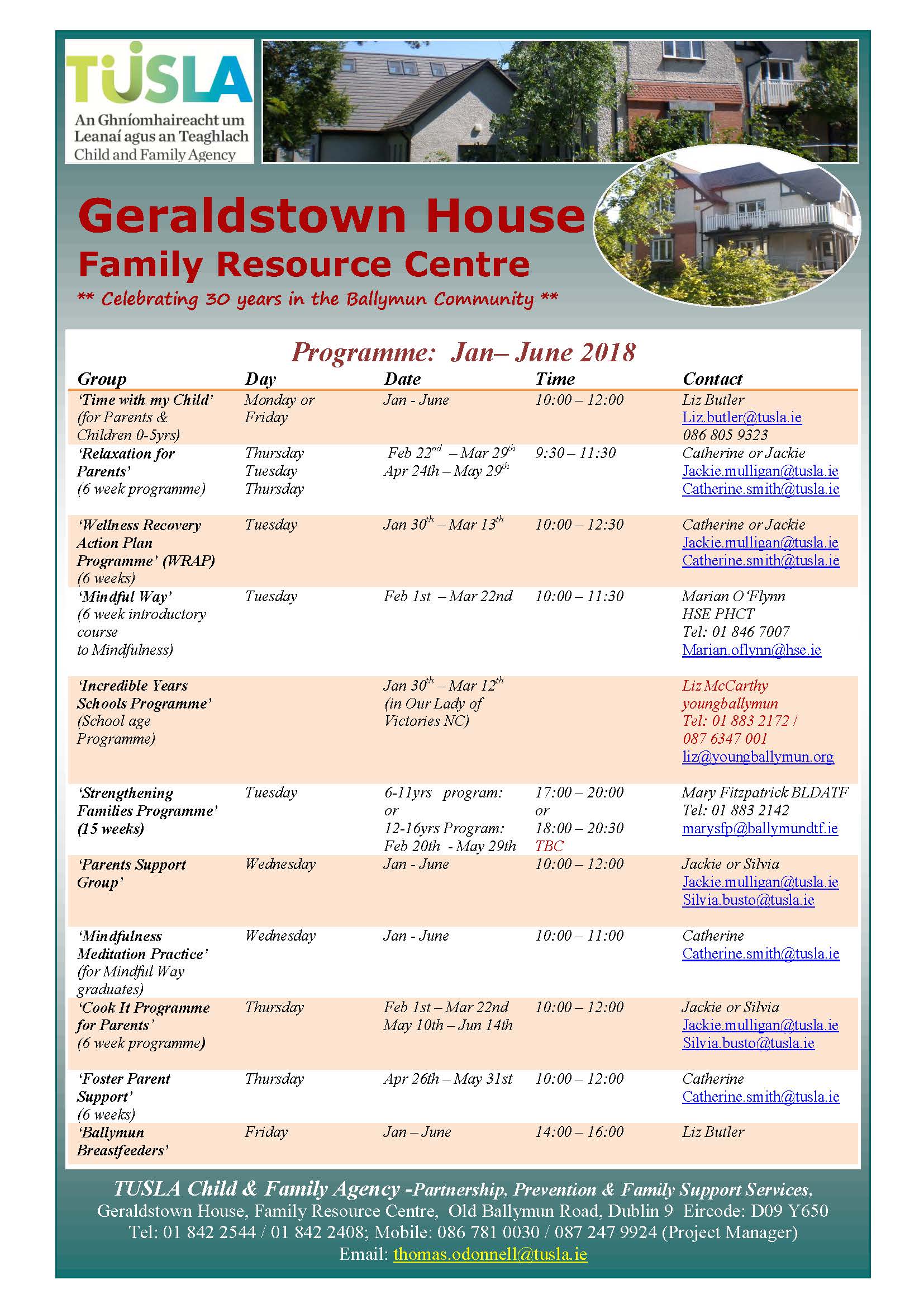 • Geraldstown House, Family Resource Centre Programmes 2018